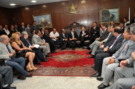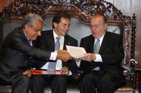 ![]() Paulinho da Força e representante dos empresários entregam documento a Sarney |