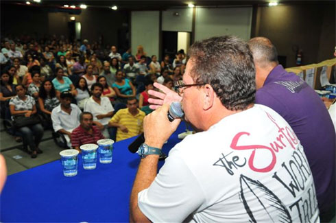 Paulo Segura![]() Diretores Teco e Arakém orientam trabalhadores da Tubocap reunidos no auditório do Sindicato |