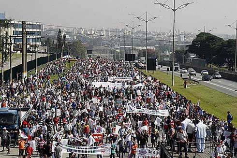 Em passeata na Anchieta, metalúrgicos do ABC pedem desoneração da PLR