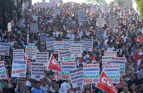 Os manifestantes iniciaram a passeata na porta da fábrica da montadora Mercedes-Benz, no início da manhã. O ato faz parte de uma série que começou  no ano passado, fruto de parceria entre os sindicatos dos trabalhadores bancários de São Paulo, químicos e metalúrgicos de São Paulo e do ABC, eletricitários de São Paulo e a Federação Única dos Petroleiros (FUP).