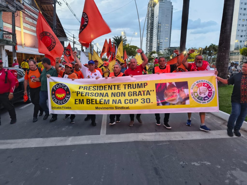 Marcha Sindical da Força Sindical e CUT em Belém do Pará, Brasil, na COP30