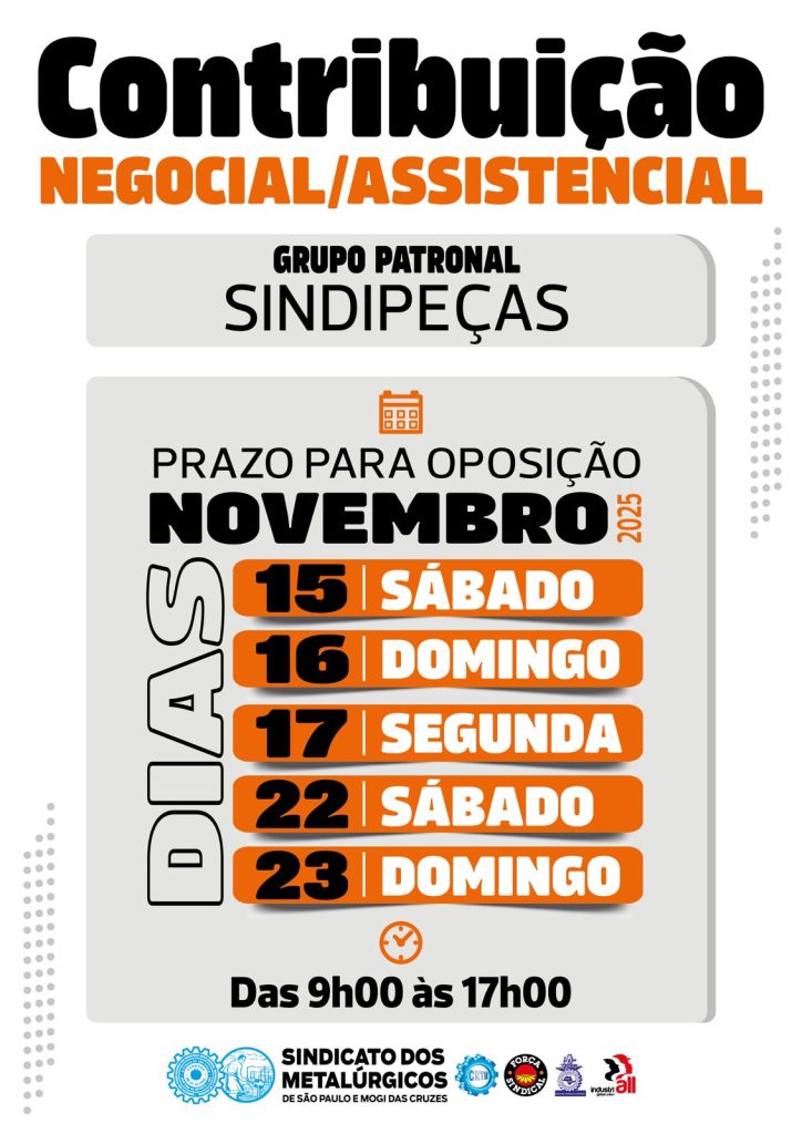 Prazo de entrega para cartas de oposição à contribuição negocial/assistencial O Sindicato dos Metalúrgicos de São Paulo e Mogi das Cruzes, fundado em 27 de dezembro de 1932, sempre lutou pela democracia, liberdade de expressão e pelos direitos dos trabalhadores. Para a consecução de tais objetivos, imperativo estabelecer condições adequadas, isto é, fontes de custeio […]