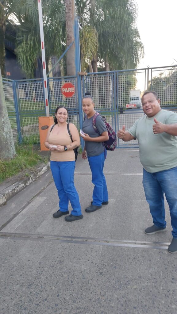 Trabalhadoras da AGCO mobilizadas no Março Mulher: com David, Marta, Ester e Lucilene