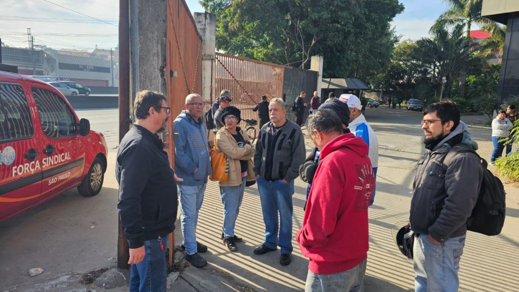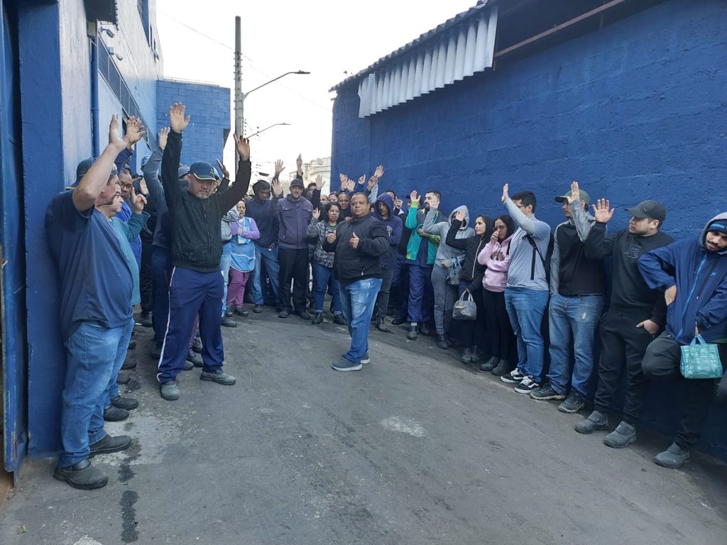Alemão com os trabalhadores da ANLUZ/THERMOLYNE. greve pelo não cumprimento, da empresa, no pagamento dos salários
