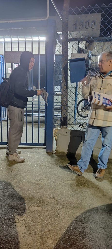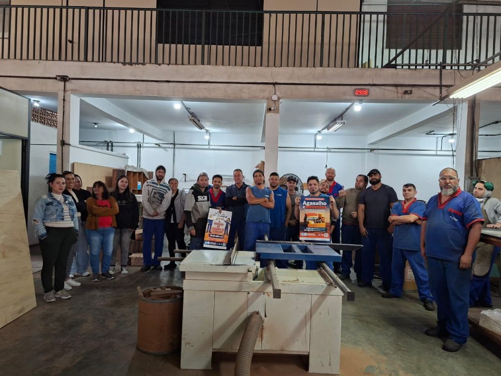 Na Plast Faca, base do diretor José Luiz (tesoureiro do Sindicato). Pauta: sindicalização, arrecadação de alimentos/agasalhos e redução da jornada de trabalho