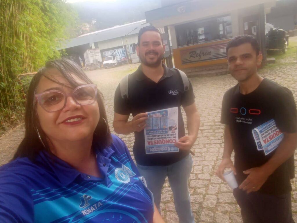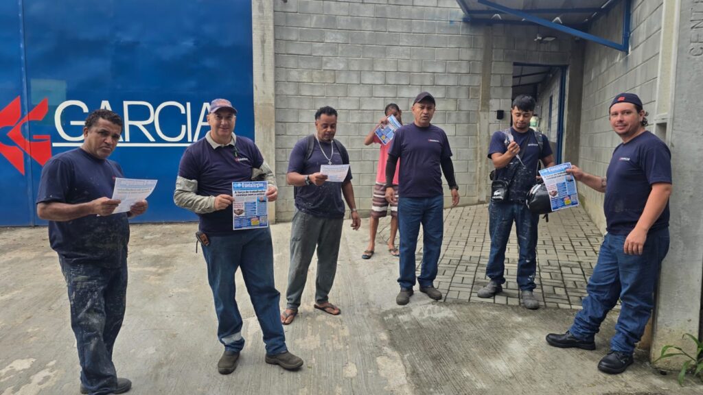 Trabalhadores da Garcia, base de ação sindical do diretor David, com o informativo “O Metalúrgico”