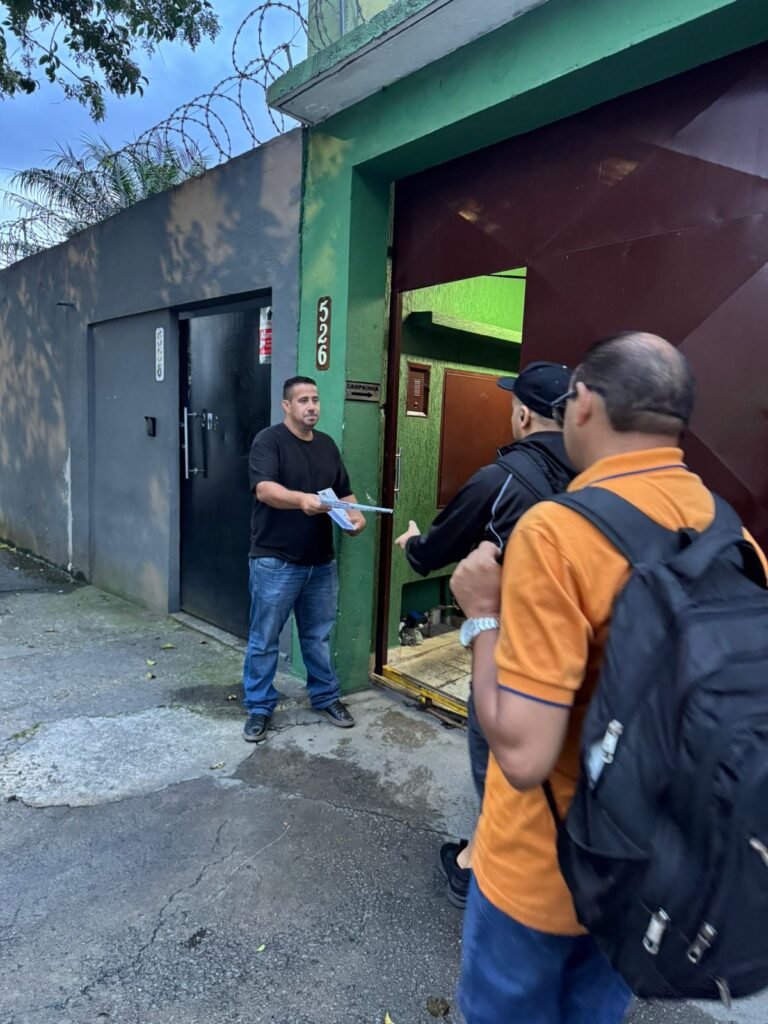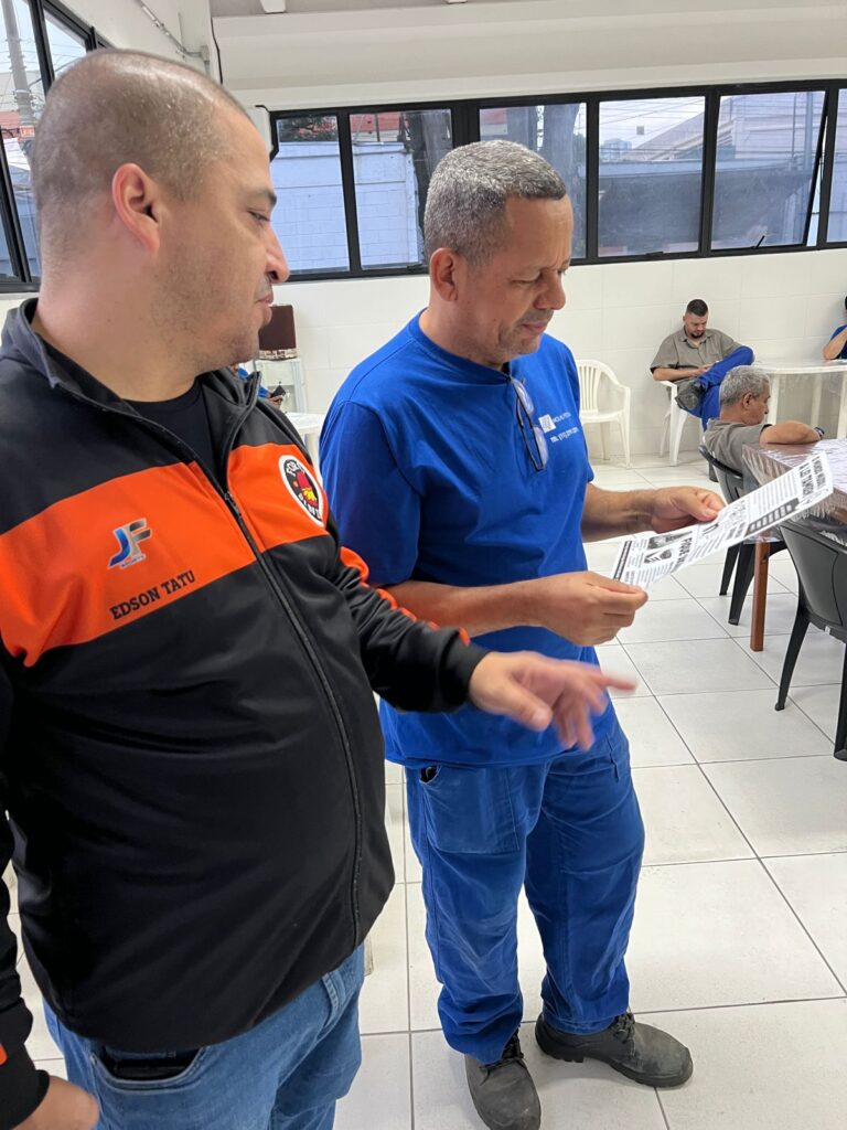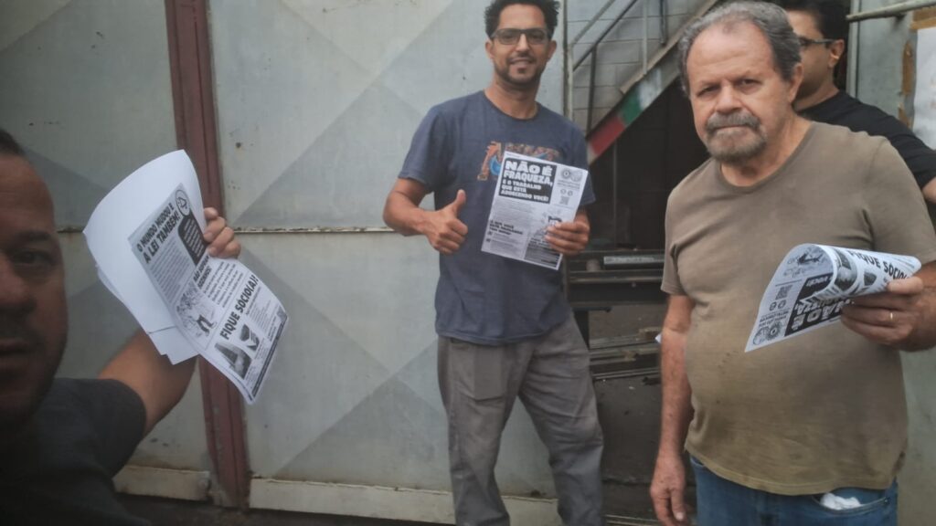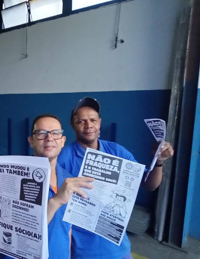 Trabalhadores da Real Perfil com informativo Saúde Mental no Trabalho (ação na base sindical do diretor Ceará)