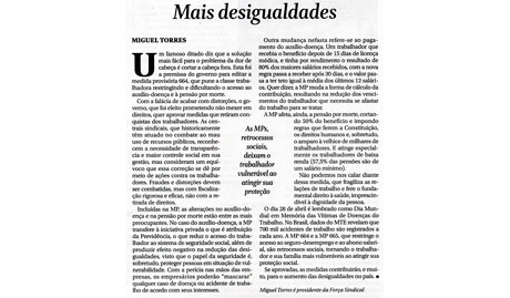 Artigo de Miguel Torres em O Globo: “Mais desigualdades”