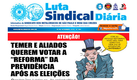 Luta Sindical desta quarta, 26 de setembro de 2018 – edição 587