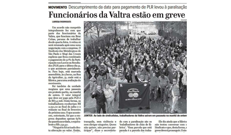 Diário de Mogi destaca greve na Valtra