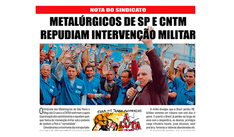 Metalúrgicos repudiam intervenção militar
