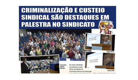 O presidente do Sintracomos (Sindicato dos Trabalhadores nas Indústrias da Construção e do Mobiliário de Santos), Marcos Braz de Oliveira, o Macaé, veio ao Sindicato dos Metalúrgicos de São Paulo nesta quinta, 26, para a palestra do professor Gerson Marques sobre criminalização do movimento sindical, quitação anual e rescisória e custeio sindical. Antes da palestra, Macaé […]