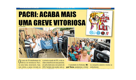 O diretor sindical Adriano Lateri e sua equipe realizaram nesta quarta, 28 de março, assembleia na Alpex, de discussão e aprovação da Convenção Coletiva de Trabalho, com todas as cláusulas sociais e econômicas que se contrapõem à lei (reforma) trabalhista. Os trabalhadores também aprovaram a manutenção do apoio ao Sindicato para a continuidade das lutas […]
