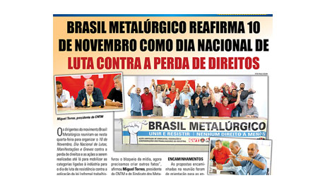 Brasil Metalúrgico reafirma Dia Nacional de Luta em 10 de novembro contra as reformas