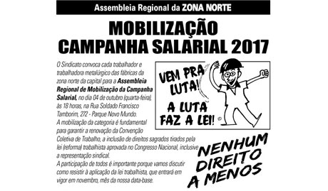 Campanha Salarial: Boletim de convocação da Assembleia Regional da zona norte nesta 4ª feira