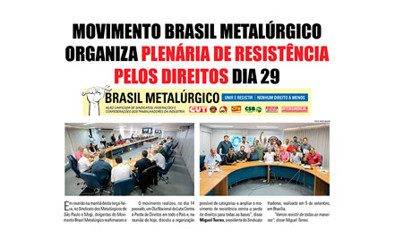 Movimento Brasil Metalúrgico organiza plenária do dia 29 de setembro pelos direitos
