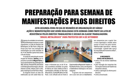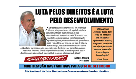 Sindicatos do Brasil Metalúrgico farão protestos em 14 de Setembro contra o fim dos direitos