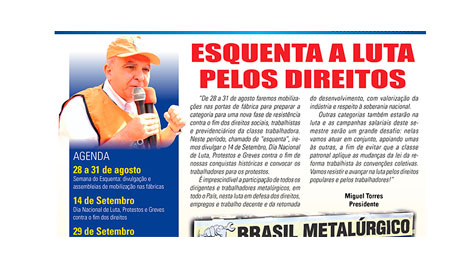 “De 28 a 31 de agosto faremos mobilizações nas portas de fábrica para preparar os trabalhadores para uma nova fase de resistência contra o fim dos direitos sociais, trabalhistas e previdenciários da classe trabalhadora. Neste período, chamado de “esquenta”, iremos divulgar o 14 de Setembro, Dia Nacional de Luta, Protestos e Greves contra o fim de nossas […]