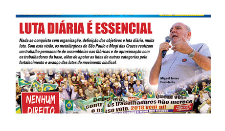 Confira entrevista de Miguel Torres publicada pelo jornal O Diário de Mogi desta quarta-feira, 9 de agosto Entrevista Presidente dos Metalúrgicos defende previdência igual para todos NATAN LIRA Na próxima sexta-feira, o Sindicato dos Metalúrgicos de São Paulo e Mogi das Cruzes e Região une-se às várias centrais sindicais ligadas à categoria metalúrgica para fazer […]