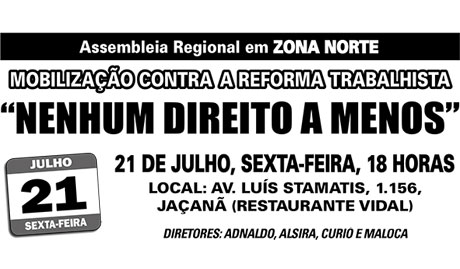 Em assembleia nesta quarta-feira (19), os trabalhadores da Schneider de Guararema rejeitaram proposta de PLR da empresa e paralisaram as atividades por três horas. A ação foi conduzida pela diretora sindical Ester com apoio da equipe, que também convocaram o pessoal para a assembleia regional de protesto contra a reforma trabalhista, nesta quinta-feira, em Mogi.