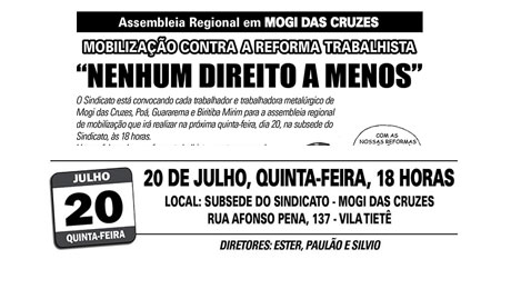 Assembleia regional em Mogi contra as reformas
