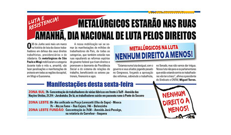 Metalúrgicos protestam no Dia Nacional de Luta contra as “reformas”