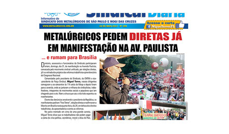 Metalúrgicos pedem Diretas Já em manifestação na Avenida Paulista e rumam para Brasília