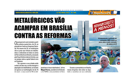 Metalúrgicos vão acampar em Brasília contra as reformas