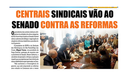 Correio Braziliense destaca Miguel Torres em reportagem sobre centrais contra as reformas