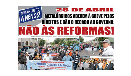 28 de abril: Metalúrgicos vão à greve pelos direitos e dizem NÃO às reformas do governo