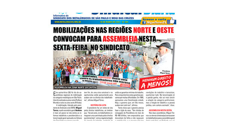 Esta quinta-feira, 30 de março, foi dia de assembleias regionais de mobilização da categoria metalúrgica em São Paulo. Uma foi realizada na zona norte, no Parque Novo Mundo, e outra na zona oeste, em Pirituba. A mobilização, liderada pelo presidente do Sindicato dos Metalúrgicos de São Paulo/Mogi das Cruzes e da CNTM, Miguel Torres, representa […]