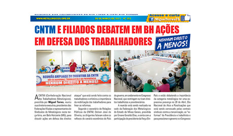Nesta terça, 28 de março de 2017, em Belo Horizonte, a CNTM (Confederação Nacional dos Trabalhadores Metalúrgicos), liderada pelo presidente Miguel Torres, reuniu sua diretoria executiva, presidentes das Federações filiadas e representantes de Sindicatos de Metalúrgicos. Objetivos: reforçar a luta contra a terceirização e contra as propostas do governo, em andamento no Congresso Nacional, que […]