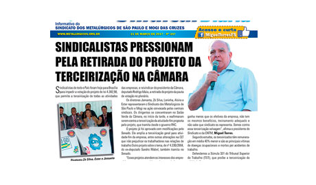 Metalúrgicos em Brasília pressionam contra votação da terceirização