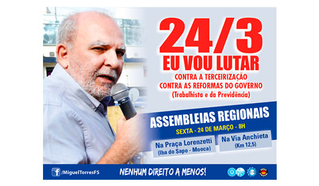 Presidente Miguel Torres convoca trabalhadores para assembleias regionais na sexta, 24 , às 8h
