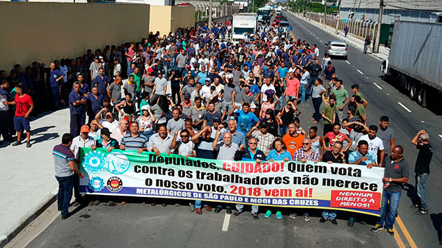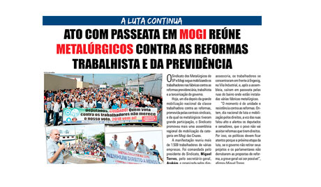 Ato com passeata em Mogi das Cruzes reúne milhares de metalúrgicos contra as reformas Trabalhista e da Previdência