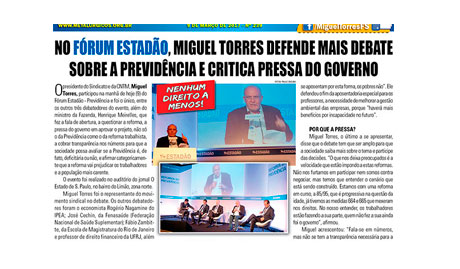 Para Marcelo Caetano, secretário da Previdência, modificações da proposta vão exigir mudanças ainda mais fortes talvez já em 2019 O Estado de São Paulo · 10 Mar 2017 Um possível esvaziamento da reforma da Previdência que o governo propôs ao Congresso deve exigir que outras reformas mais duras sejam feitas no futuro, começando já em […]