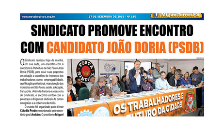 Artigo do presidente do Sindicato e da CNTM, Miguel Torres, publicado no jornal Diário de S.Paulo desta quarta-feira, 28 de setembro