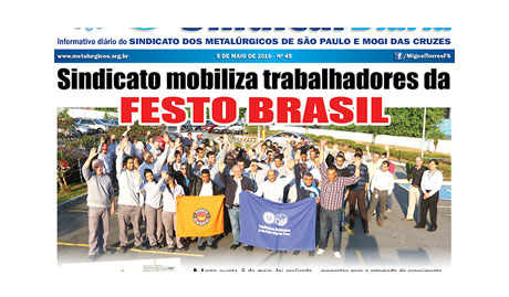 No dia 5 de maio de 2016, foi realizada assembleia na metalúrgica Festo Brasil, com presença de Miguel Torres, presidente do Sindicato e da CNTM e vice-presidente da Força Sindical. A assembleia foi organizada pelo diretor Mala e faz parte da mobilização do Sindicato contra a recessão e o desemprego. “São assembleias diárias que fortalecem […]