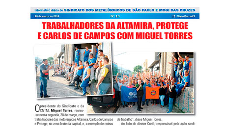 O presidente do nosso Sindicato, Miguel Torres, participou nesta segunda, 28 de março, de assembleia na Vila Manchete, Carrão, região leste de São Paulo, com os trabalhadores das metalúrgicas Altamira, Carlos de Campos e Protege. A assembleia foi realizada pelo diretor Curió e contou com a presença da diretora Alsira. Miguel Torres explicou aos trabalhadores […]