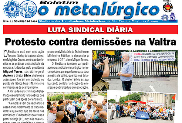 Estamos com uma ação forte na Valtra, em Mogi das Cruzes, contra as demissões e as práticas antissindicais da empresa. Nesta sexta, 11 de março, os diretores e assessores do Sindicato, liderados pelo presidente Miguel Torres, pelo secretário-geral Arakém e pelo diretor Sílvio, realizam uma grande manifestação na porta da fábrica, inclusive com barracas de […]