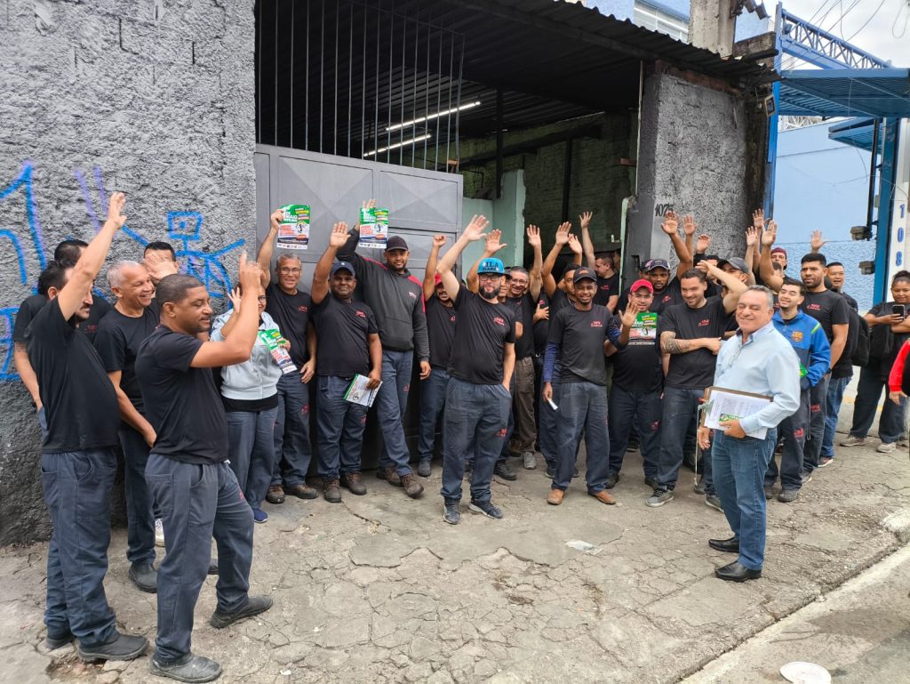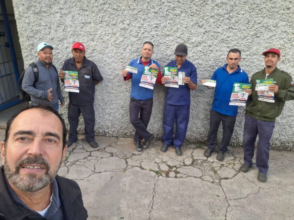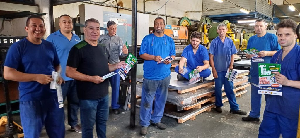 Diretor Ninja na ALFA ELEVADORES divulgando o 1º de Maio 2025
