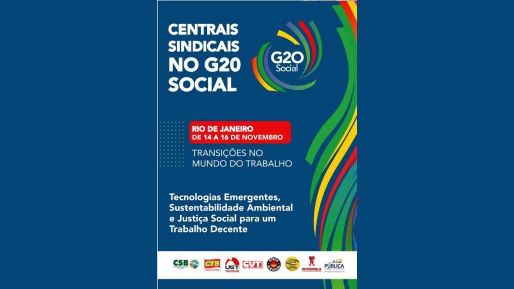 As centrais sindicais Força Sindical, CUT, UGT, CTB, Nova Central, CSB, Intersindical e Pública participarão do G20 Social, de 14 a 16 de novembro de 2024, no Rio de Janeiro. Para isso foi preparado um documento unitário elaborado junto com o DIEESE, que servirá como base, no qual destacam a importância de garantir empregos de […]