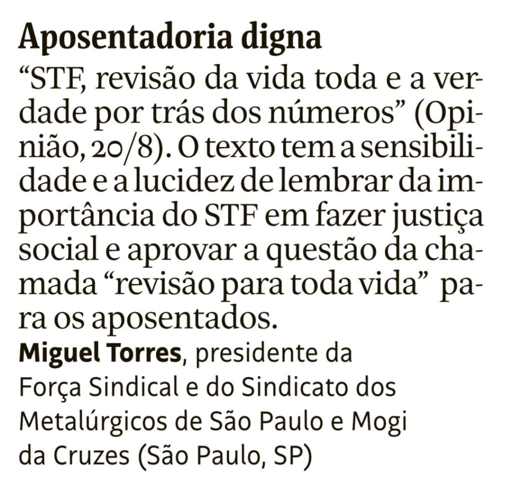 O presidente Miguel Torres (Força Sindical, CNTM e Sindicato dos Metalúrgicos de São Paulo e Mogi das Cruzes) está em Brasília para uma série de ações de interesse da classe trabalhadora. Nesta quarta, 21 de agosto de 2024, por exemplo, participou de audiência pública da Frente Parlamentar Mista da Previdência Social, em defesa dos direitos […]