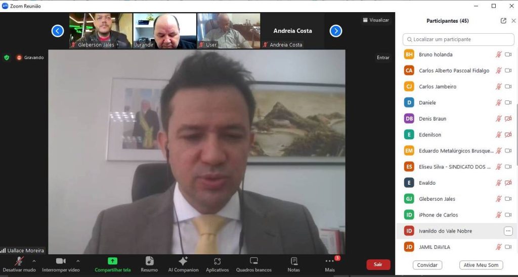 Uallace, secretário do Ministério do Desenvolvimento, Indústria, Comércio e Serviços, participa de reunião online da diretoria executiva da CNTM