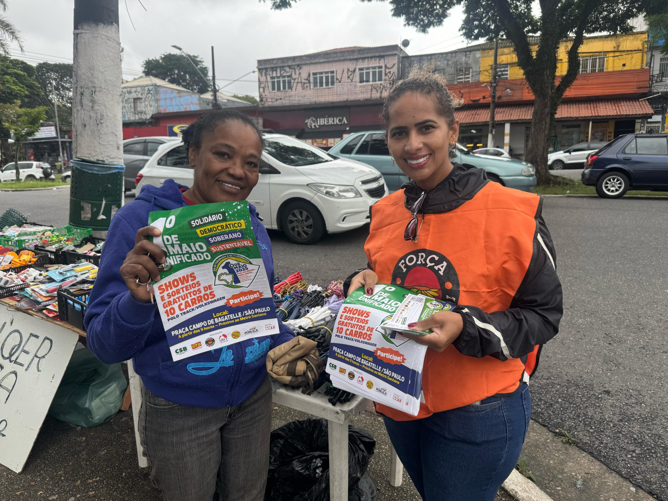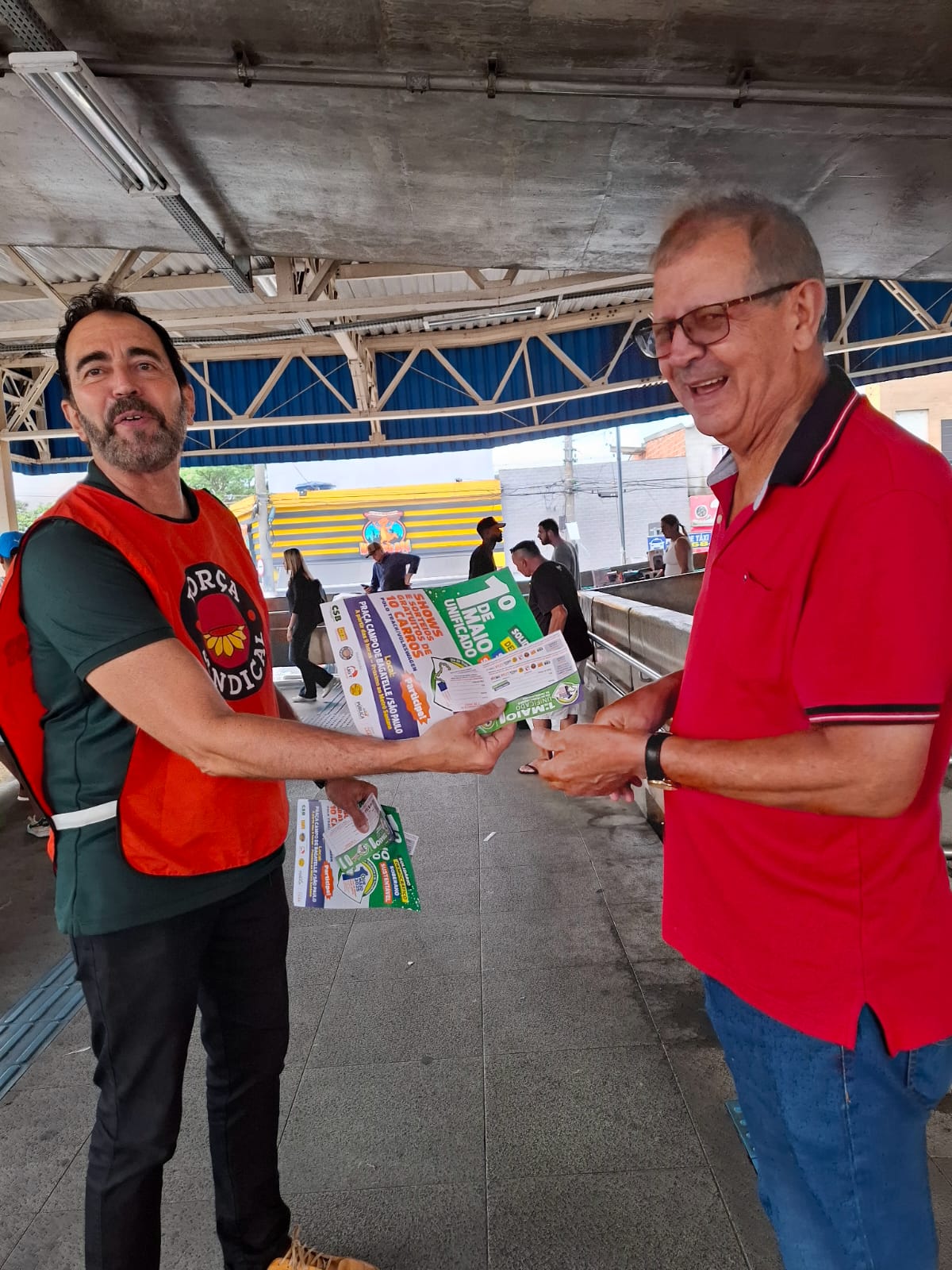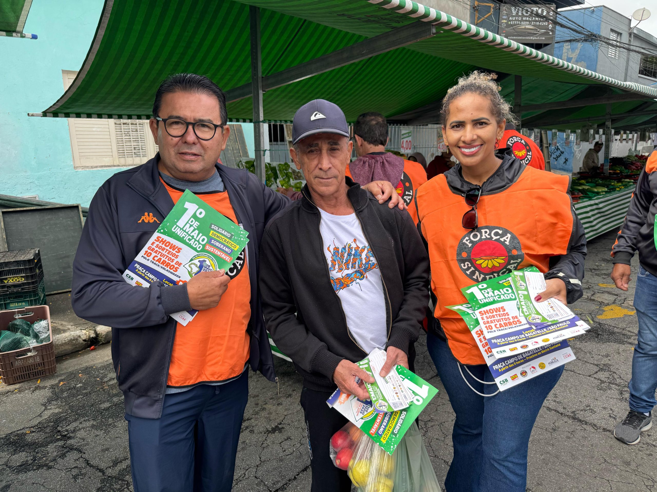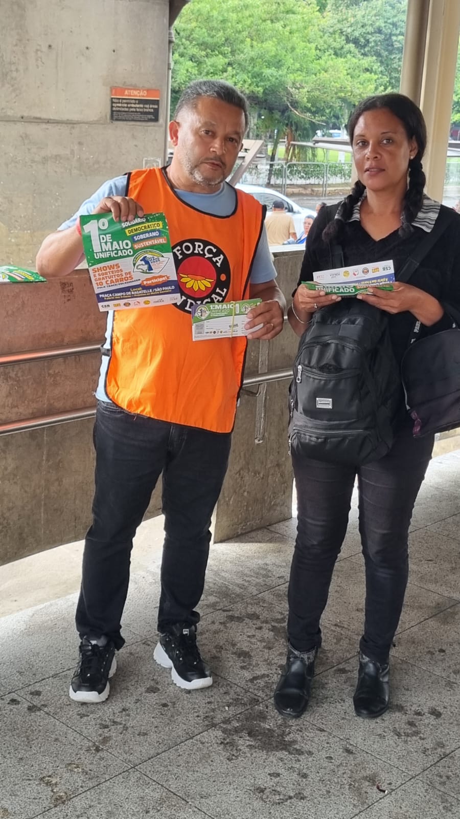 Os diretores e diretoras do nosso Sindicato estão divulgando intensamente o Dia Internacional do Trabalhador e da Trabalhadora “1º de Maio 2025”, com distribuição de panfletos nas estações de trem, metrô e ônibus, feiras, praças públicas e outros locais públicos de grande circulação de pessoas.