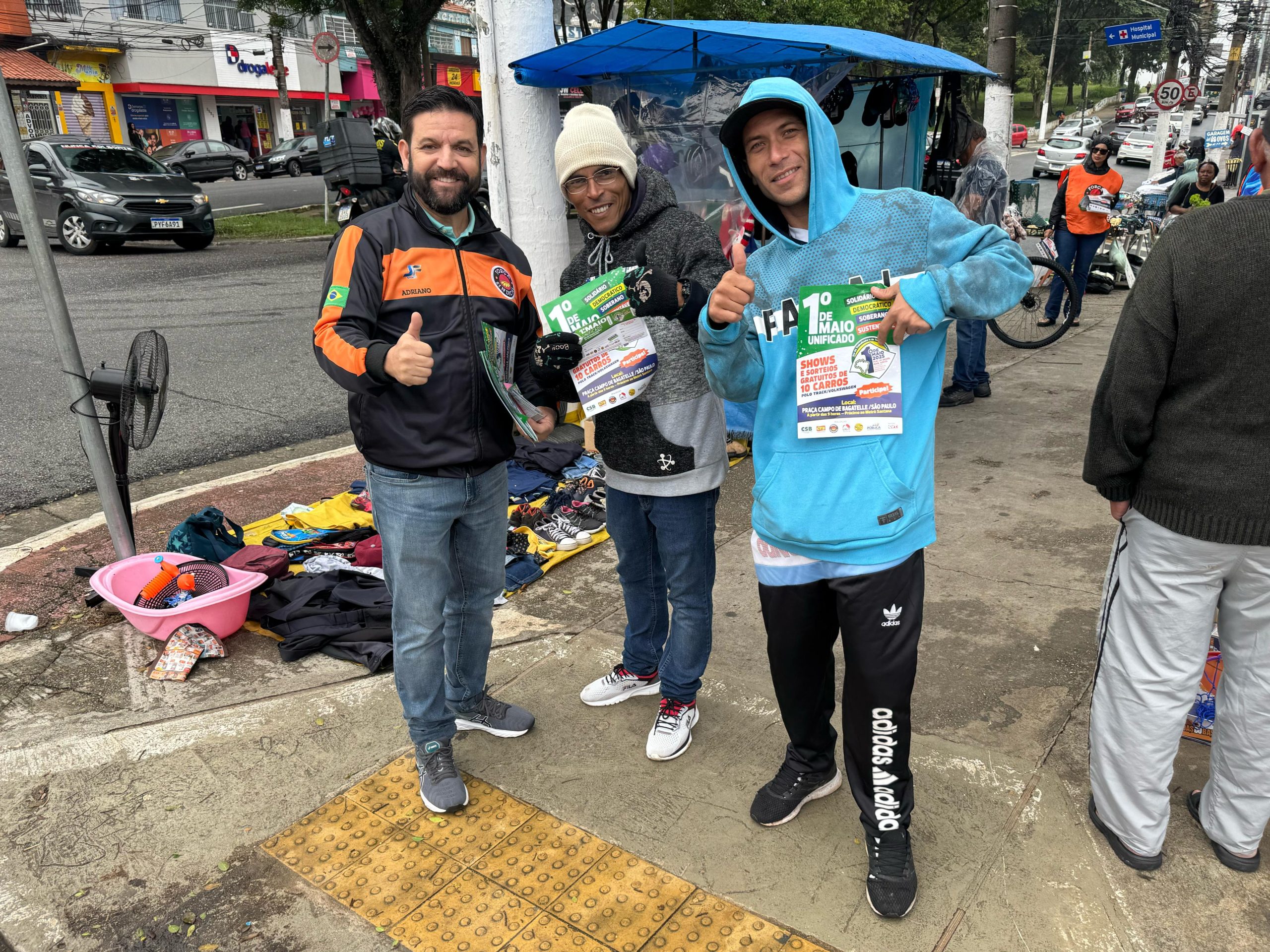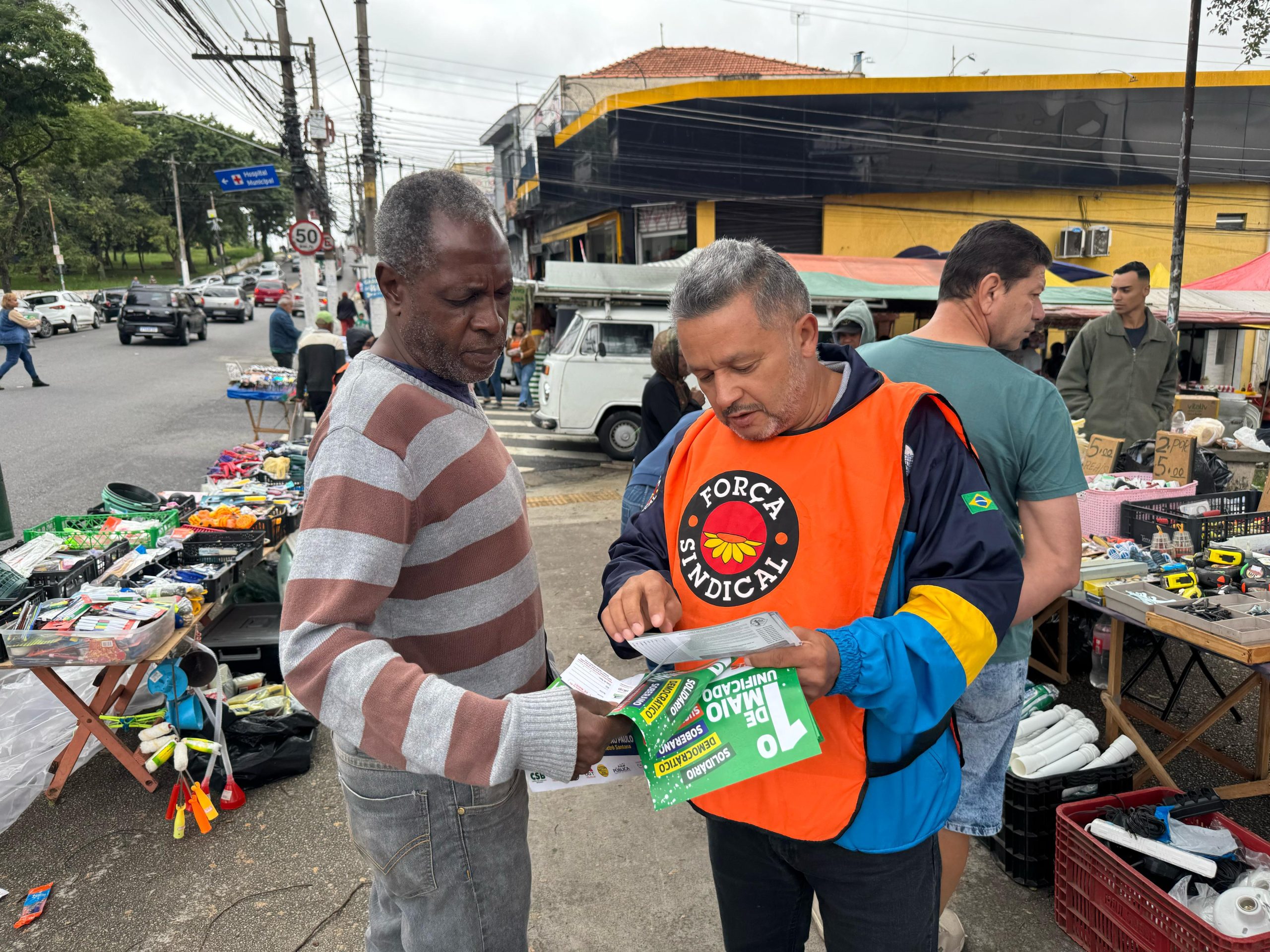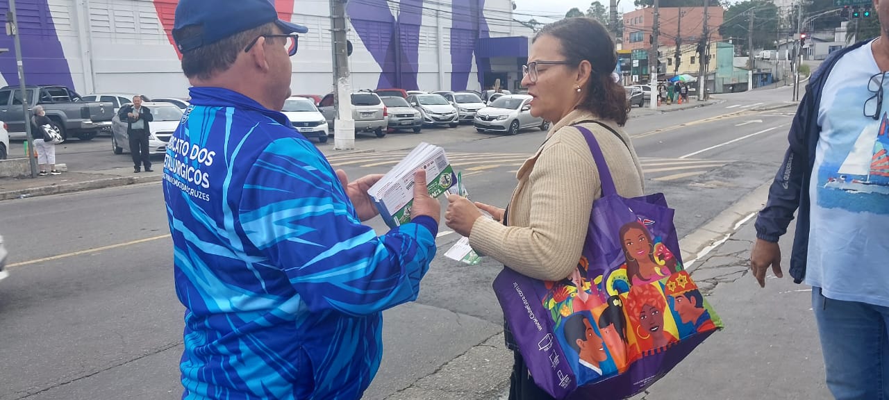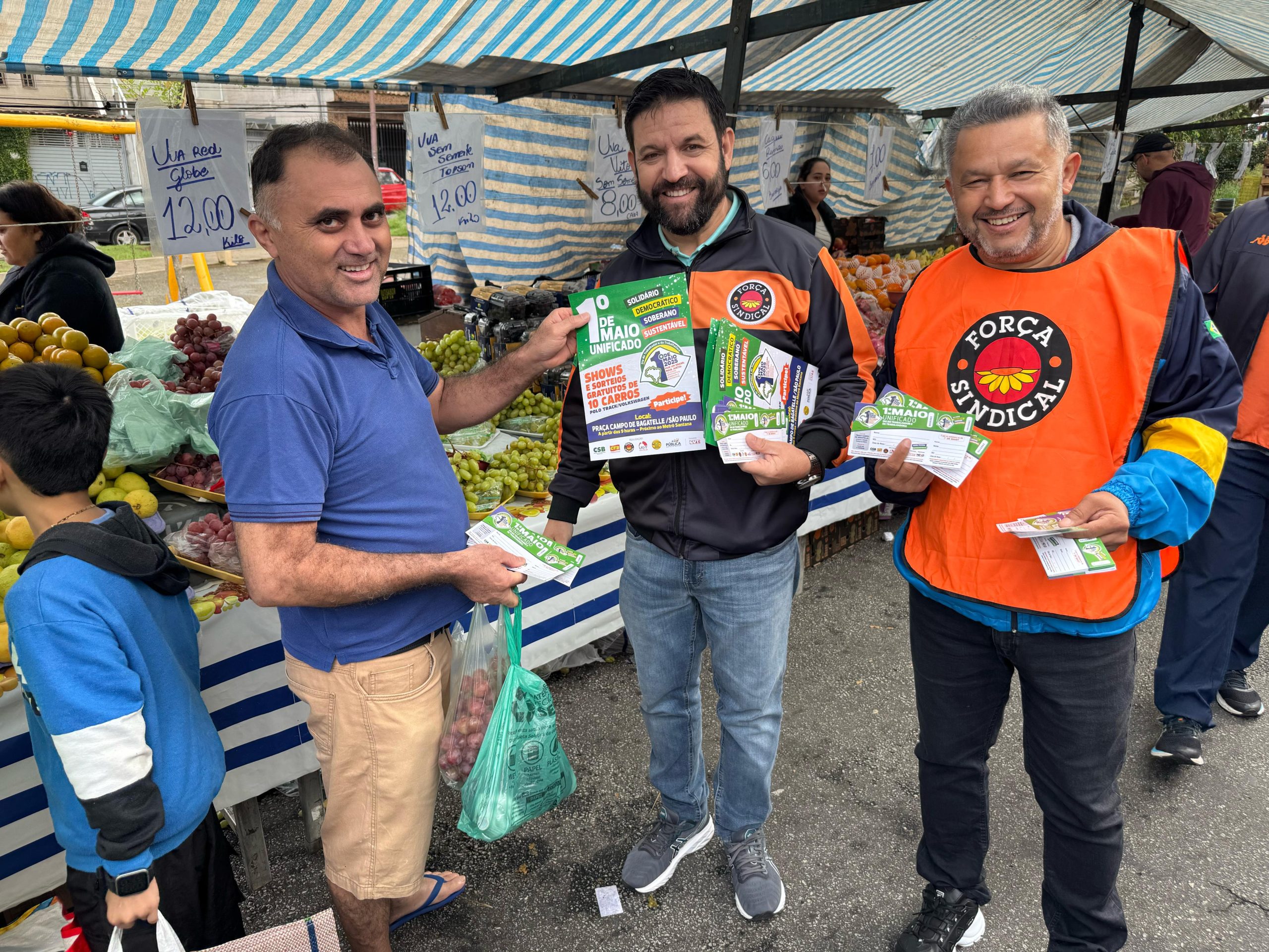 Os diretores e diretoras do nosso Sindicato estão divulgando intensamente o Dia Internacional do Trabalhador e da Trabalhadora “1º de Maio 2025”, com distribuição de panfletos nas estações de trem, metrô e ônibus, feiras, praças públicas e outros locais públicos de grande circulação de pessoas.