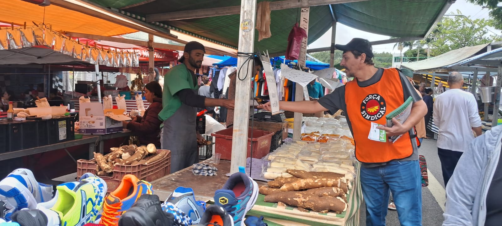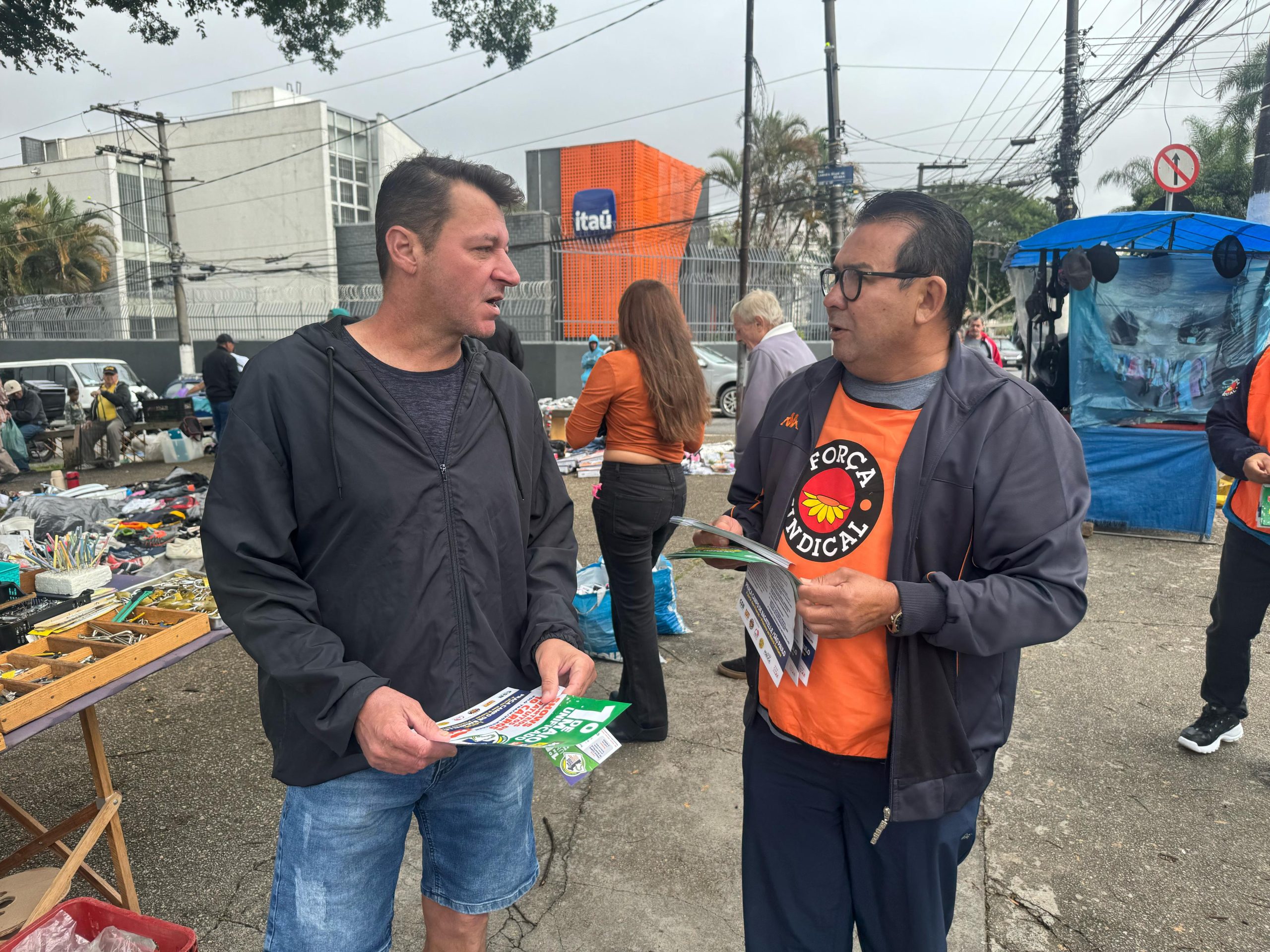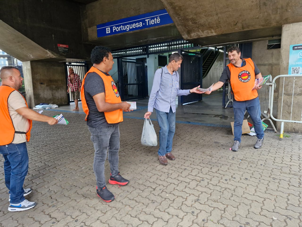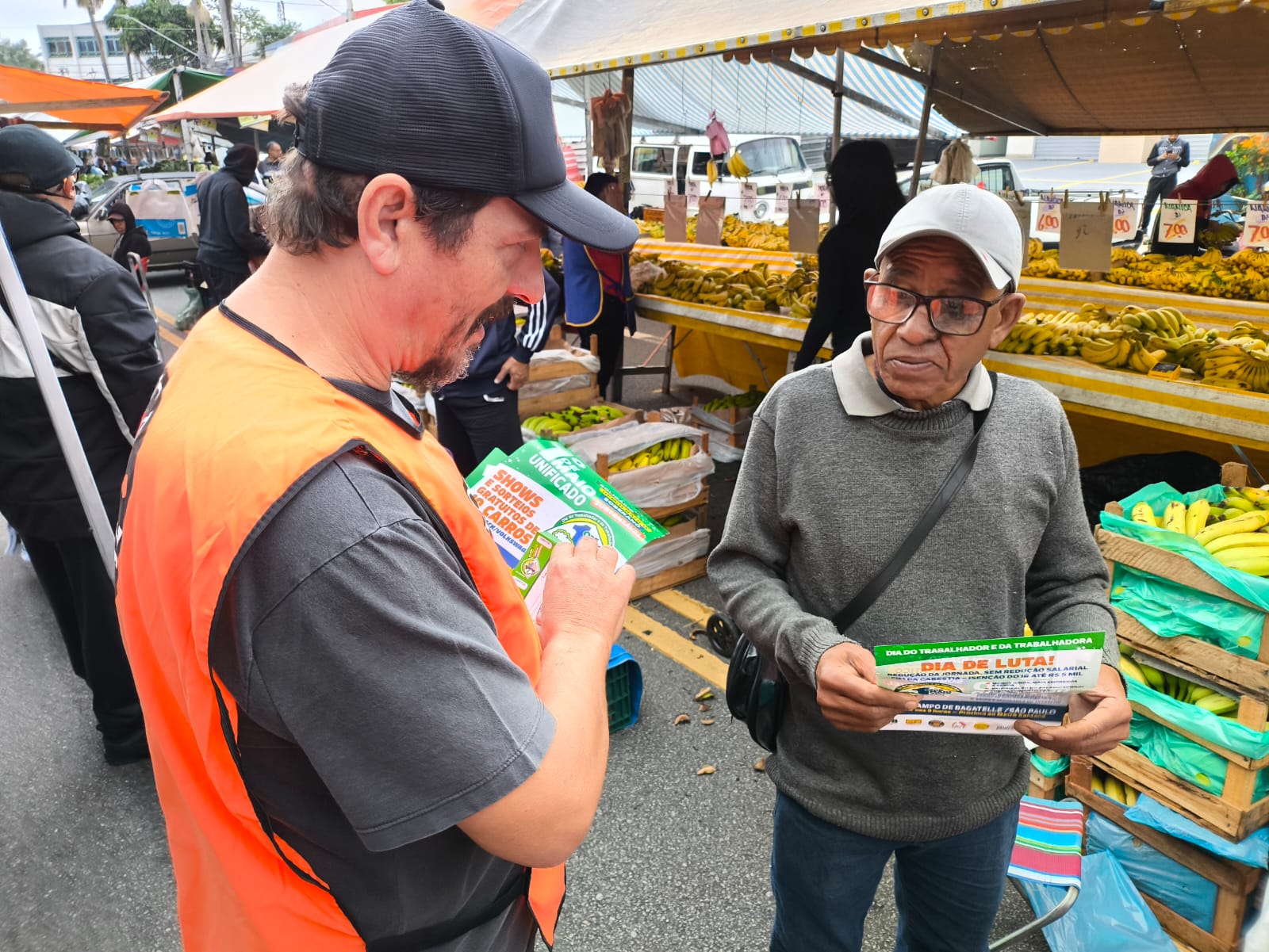 Os diretores e diretoras do nosso Sindicato estão divulgando intensamente o Dia Internacional do Trabalhador e da Trabalhadora “1º de Maio 2025”, com distribuição de panfletos nas estações de trem, metrô e ônibus, feiras, praças públicas e outros locais públicos de grande circulação de pessoas.