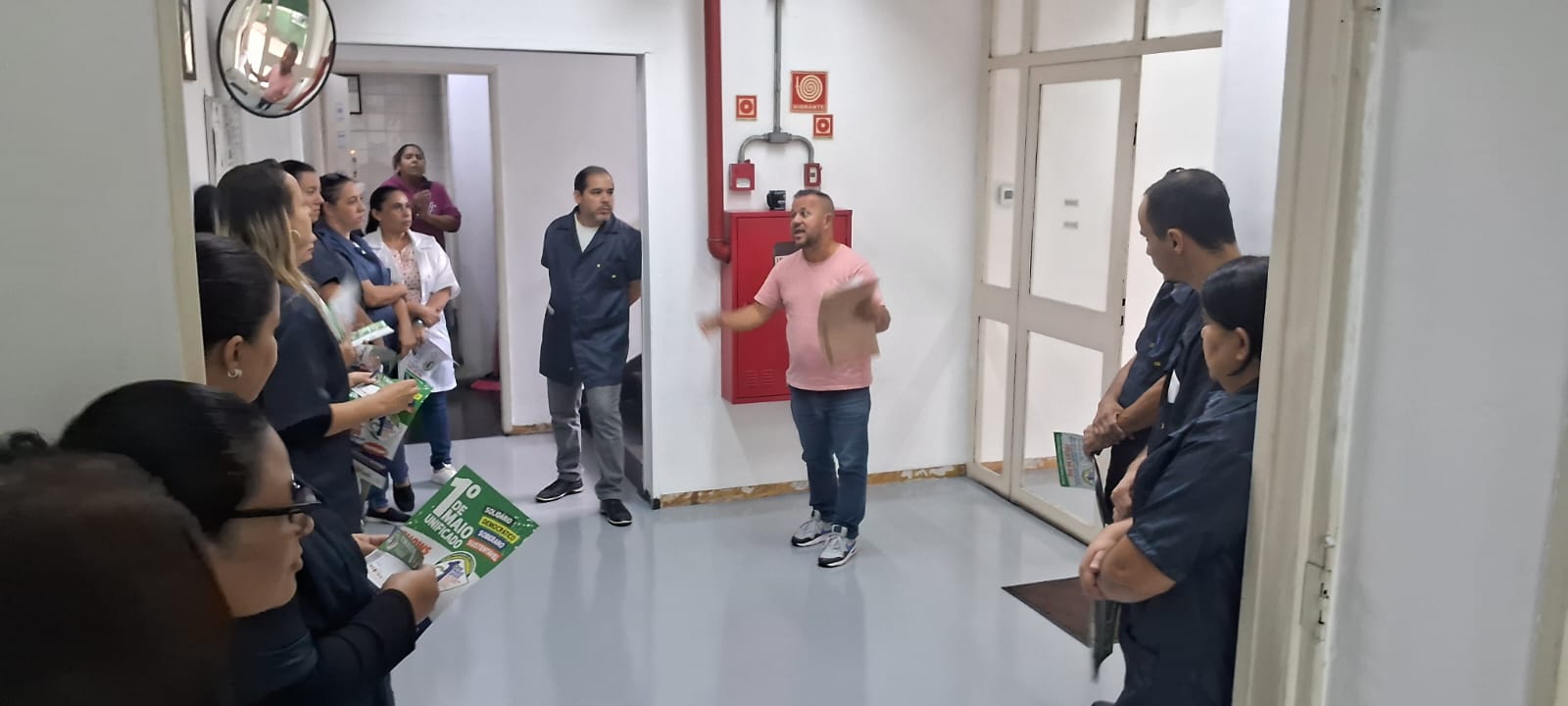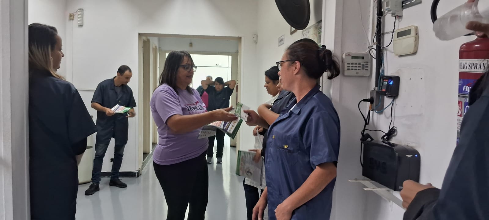 Amaro e Renata na REAG SPRAY – base da diretora Alsira – aprovando PLR e divulgando o 1° de Maio 2025