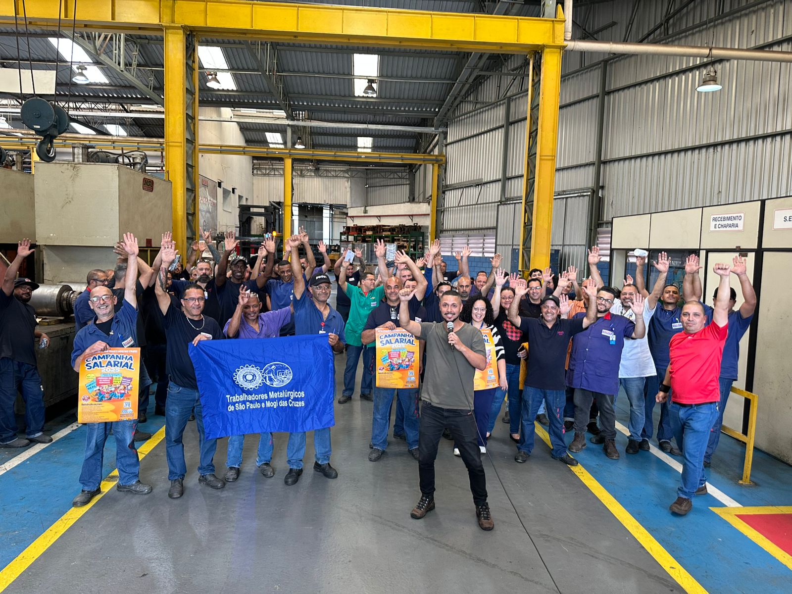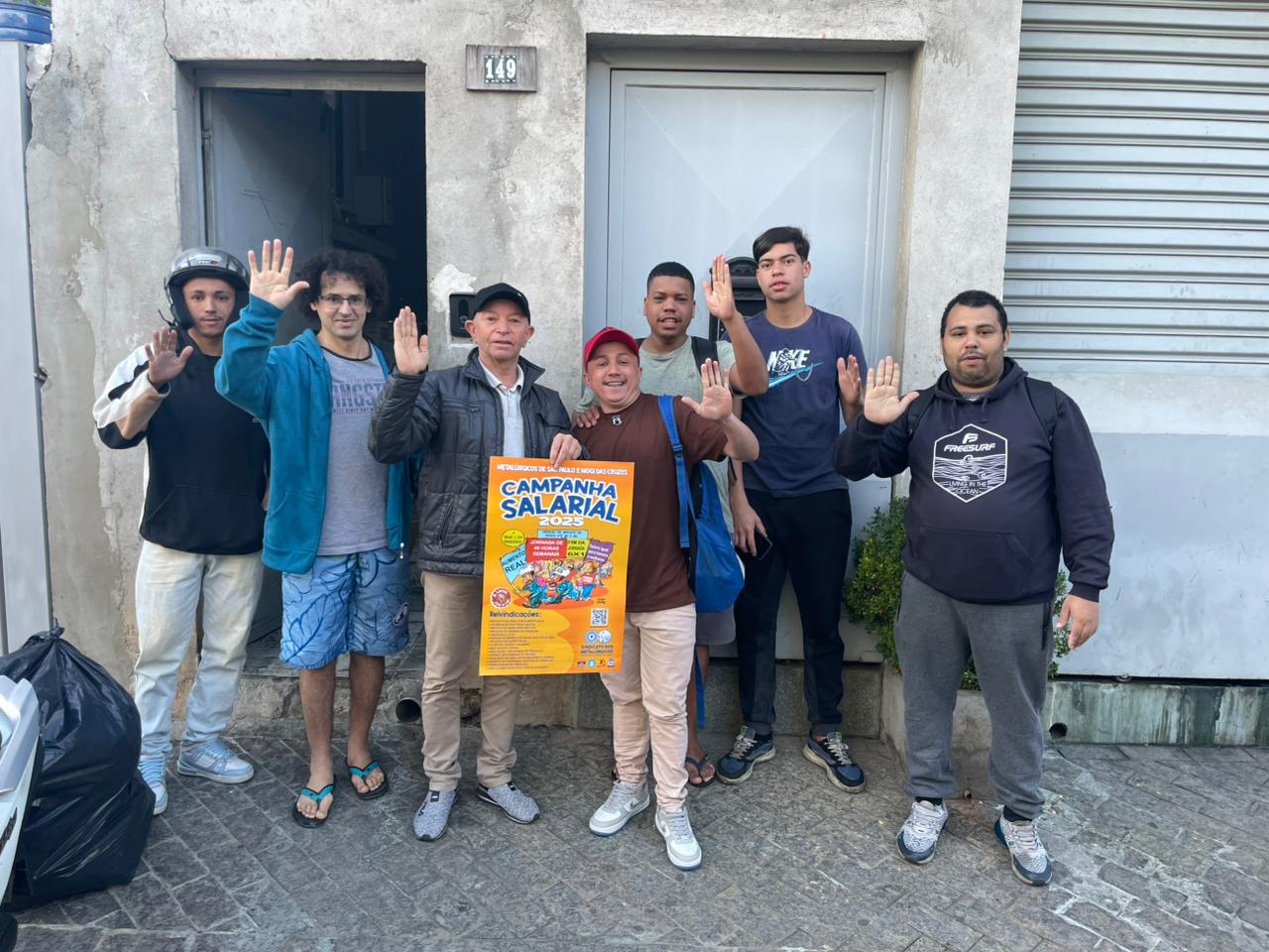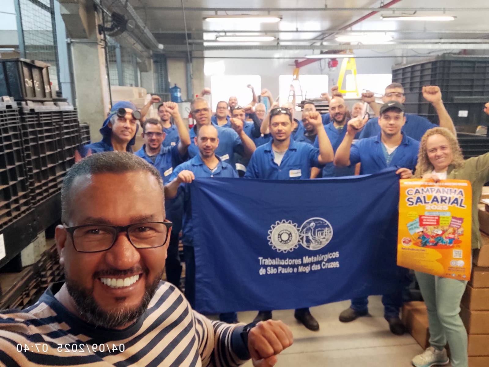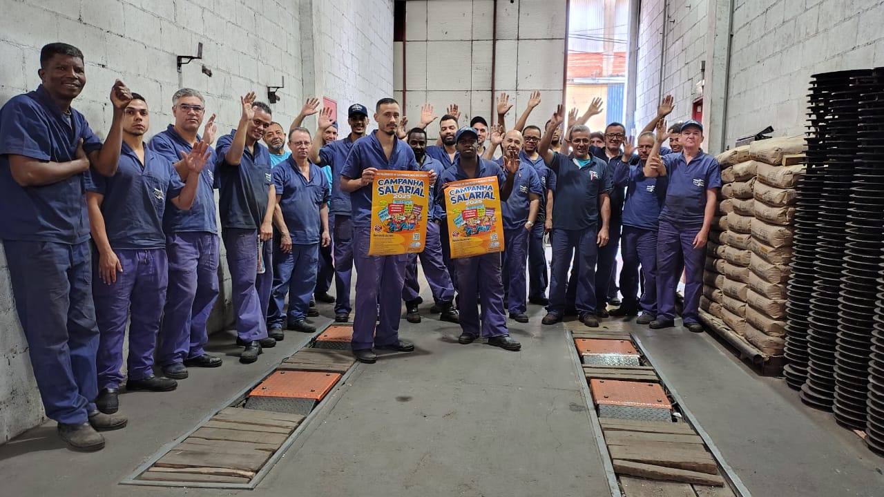 Ação Comunicativa – o Sindicato produziu cartaz, jornal o Metalúrgico e faixa e tem feito encontros diários com os trabalhadores de mobilização nas fábricas, divulgando a Assembleia e as reivindicações da campanha salarial 2025.