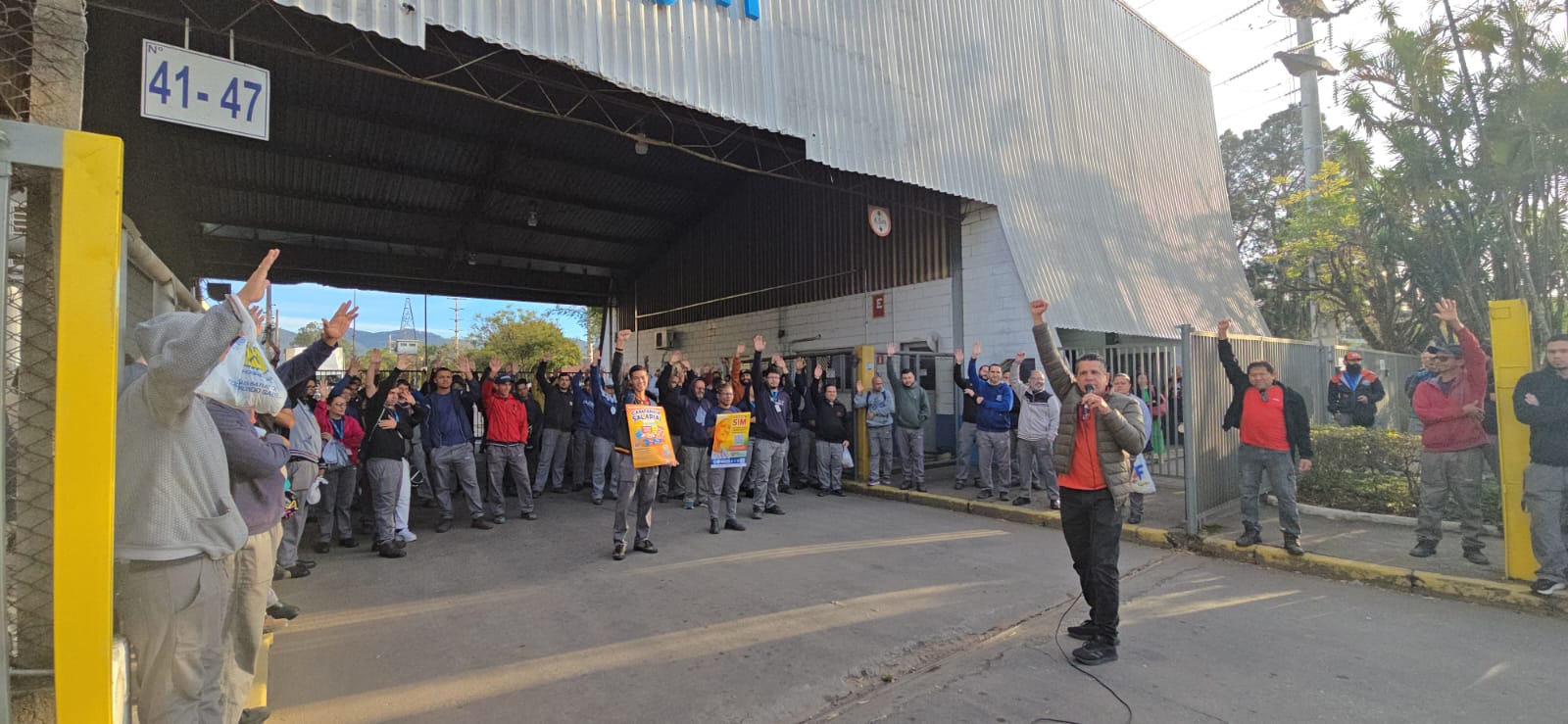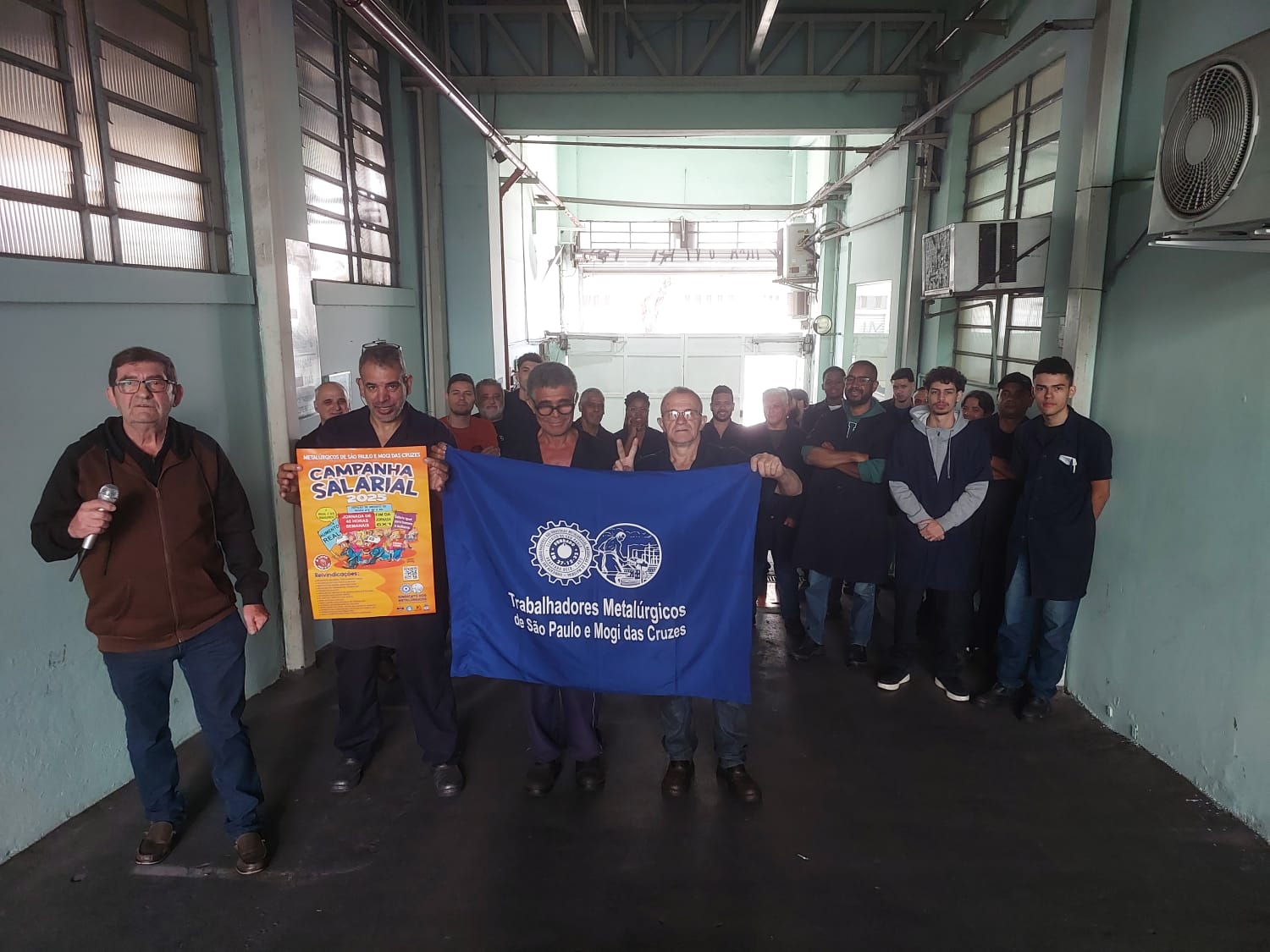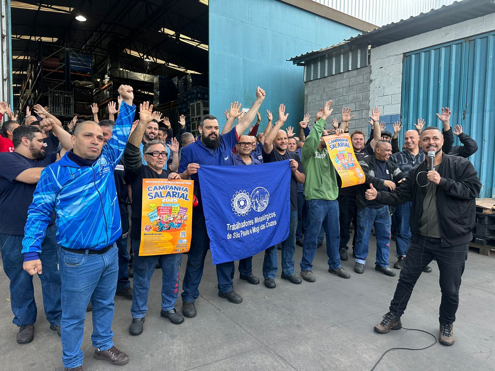 Ação Comunicativa – o Sindicato produziu cartaz, jornal o Metalúrgico e faixa e tem feito encontros diários com os trabalhadores de mobilização nas fábricas, divulgando a Assembleia e as reivindicações da campanha salarial 2025.